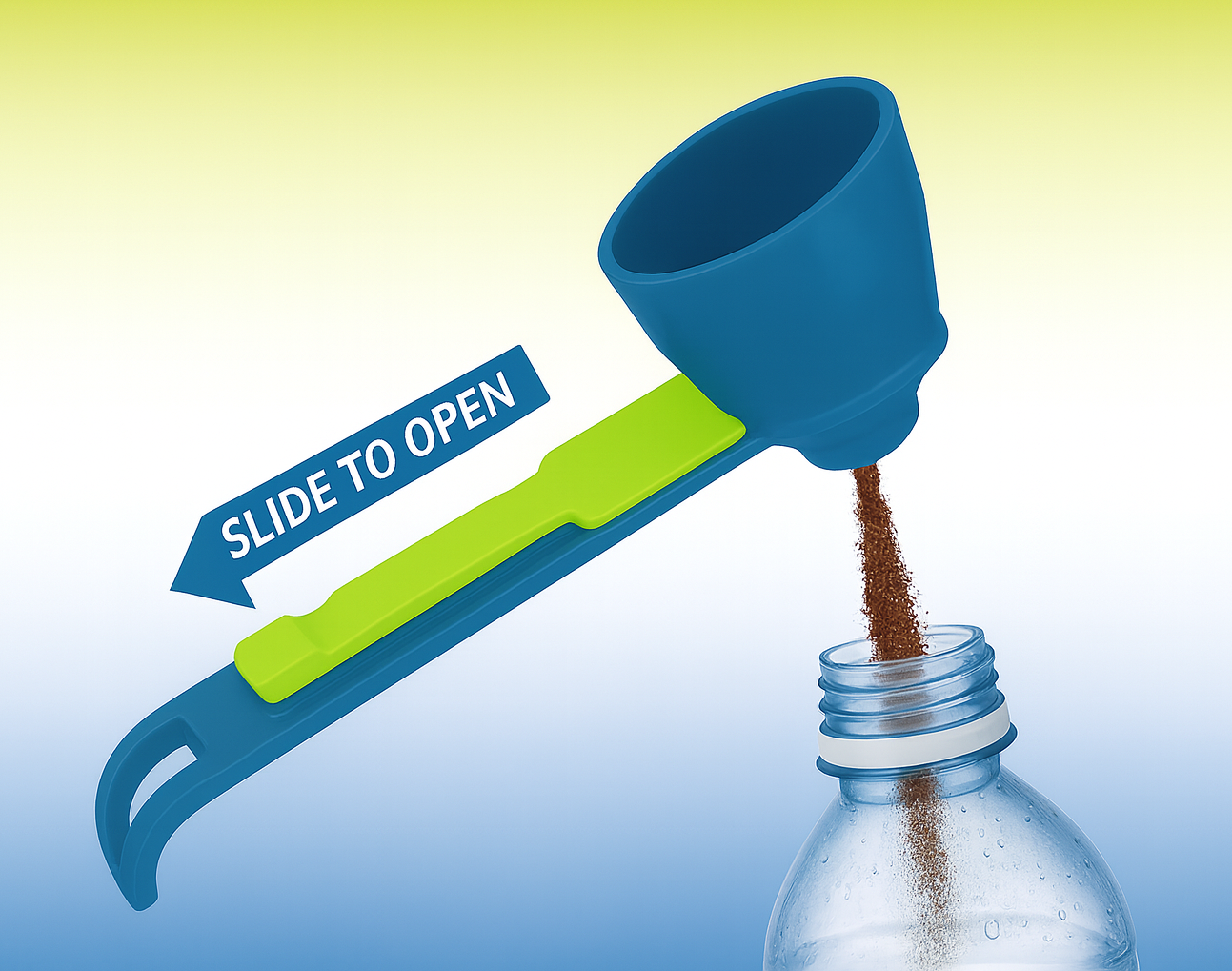 Load any powder into the Funnel, slide, and it drops smoothly into your drink.